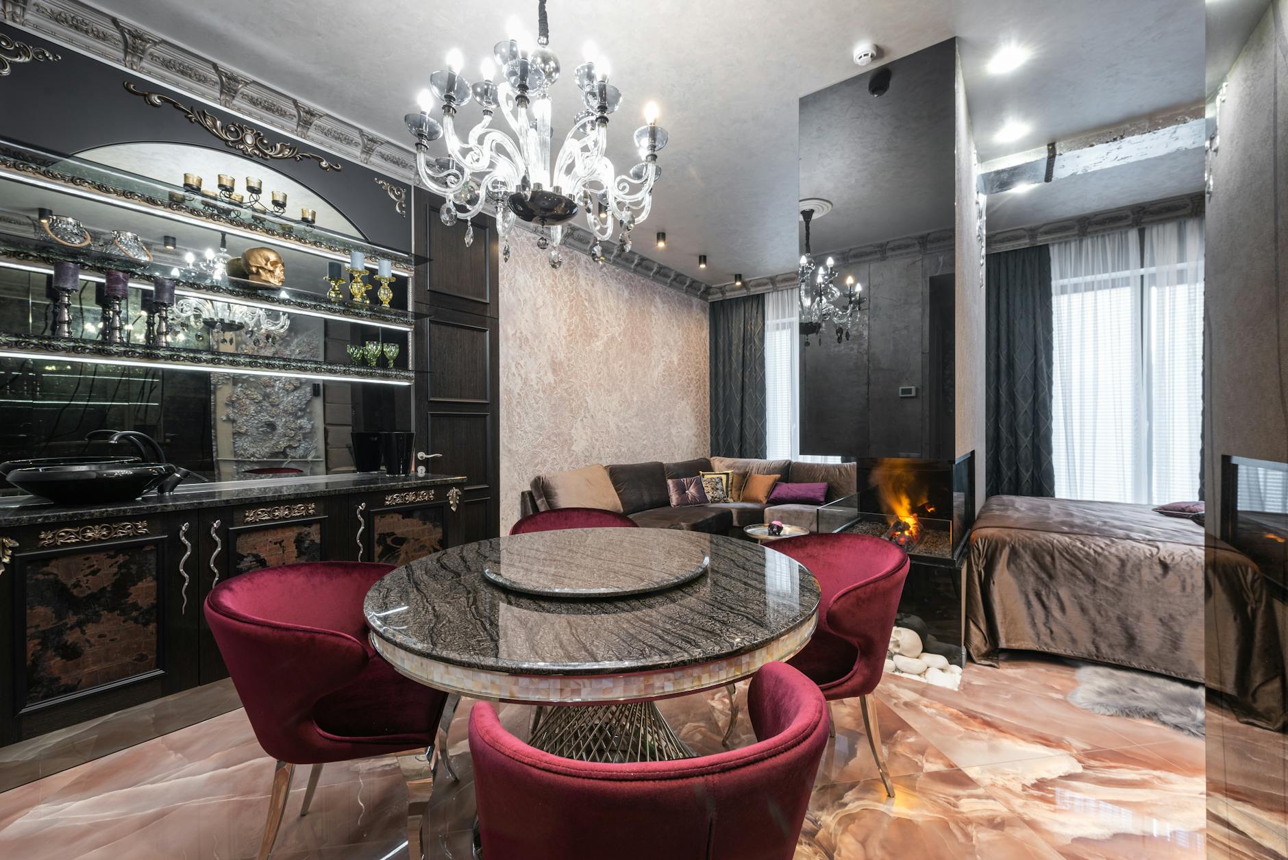 En la planta principal destaca un salón comedor de doble altura con salida directa a la terraza principal. La cocina, equipada con electrodomésticos de alta gama, incluye una isla central que permite un uso versátil del espacio.
